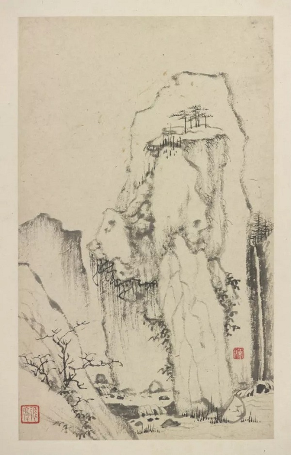 弘仁畫從宋元各家入手,尤崇倪瓚畫法,但其作品格調不同于倪瓚,少荒涼寂寞之境,而多清新之意。