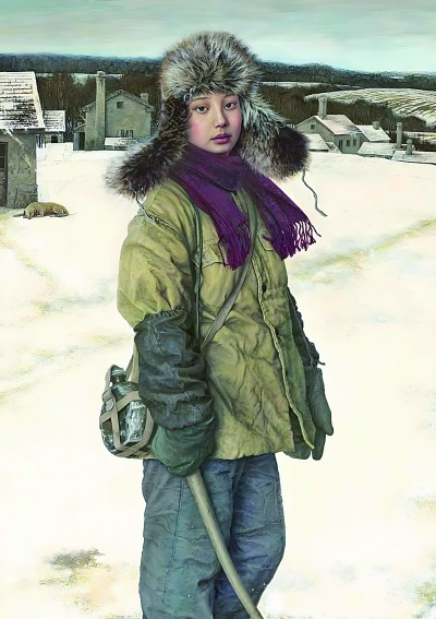 藝術(shù)家劉孔喜一直致力于坦培拉繪畫的創(chuàng)作和教學(xué)工作,他在實(shí)踐中嘗試通過技法的改良,簡化坦培拉繪畫的創(chuàng)作步驟。他摒棄了以素描方式打底,而是僅以簡單的墨線勾勒物象輪廓,再運(yùn)用坦培拉顏料以類似油畫的色彩堆疊方式直接塑造物象的體積與光影,僅需要在作畫過程中的數(shù)個節(jié)點(diǎn)進(jìn)行整體罩染。這樣的繪畫方式大約可將罩染的層數(shù)縮減至5到8層,提高了作畫效率。在作品完成后也可根據(jù)畫面的需要涂覆上光油,以達(dá)到與傳統(tǒng)坦培拉畫法一樣的效果。如劉孔喜的作品“青春紀(jì)事系列”(圖②)便運(yùn)用了此繪畫技法,畫面中典型的北方雪景與女性形象給人以靜穆、質(zhì)樸的美感。改良后的顏料堆疊方式使得畫面更加厚重,細(xì)節(jié)處的溫潤光澤恰如其分地傳遞出畫中人物豐富的內(nèi)心世界。