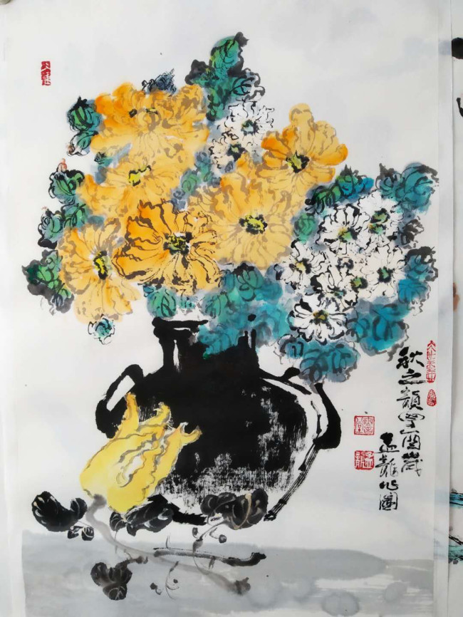 上大學(xué)后,系統(tǒng)的學(xué)習(xí)了國(guó)畫(huà)藝術(shù),對(duì)中西繪畫(huà)藝術(shù)進(jìn)行了比較、借鑒和傳承。德拉克羅瓦、列賓.列維坦、梵高、蘇里科夫等西方藝術(shù)家的繪畫(huà)資料對(duì)我的觸動(dòng)很深。色彩、線(xiàn)條、光影及畫(huà)作的振撼力和情感性,都使我非常的感佩。融合到自己的繪畫(huà)體系中,注重傳統(tǒng),也注重創(chuàng)新的想法時(shí)時(shí)在腦海縈回……。這種創(chuàng)新要結(jié)合自己的感受,琢磨中國(guó)畫(huà)材的特色,多開(kāi)拓眼界,還應(yīng)跟朋友多交流。