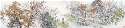 退休之后我開始畫百開人物冊頁,隨后創(chuàng)作了園林題材作品,如今這批作品以“集虛尋境”為展覽主題在國家大劇院藝術(shù)館(西廳)展出。我習慣于一段時間按照一個主題,集中創(chuàng)作一個類型作品。我很早就選擇人物畫、山水畫、花鳥畫創(chuàng)作齊頭并進,三四十年間舉辦過花鳥、山水、人物的專題展,包括手卷專題展。園林題材的集中創(chuàng)作,是我對中國畫的階段性再認識,也是我新的人生階段的繪畫體驗。作為藝術(shù)家,沉浸在繪畫中的愜意難以言表。