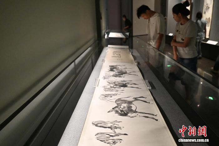 圖為黃胄的《毛驢圖》吸引參觀者。中新社記者 陳楚紅 攝