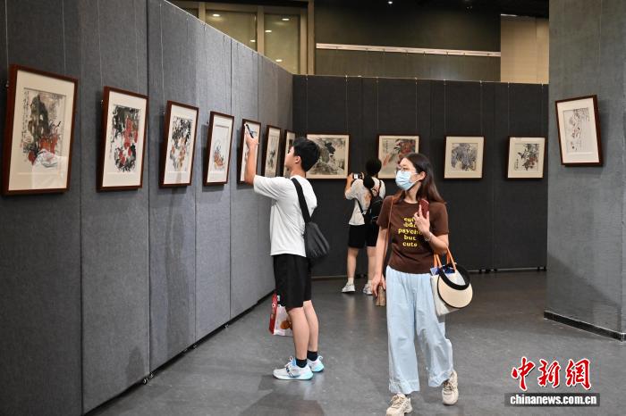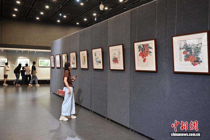 ??7月19日,“七月荔枝紅”主題書畫展吸引參觀者。近日,該展覽在廣州市廣州圖書館展出,以嶺南荔枝為主題,展現廣州白云區鄉村振興與嶺南文化魅力。中新社記者 陳楚紅 攝