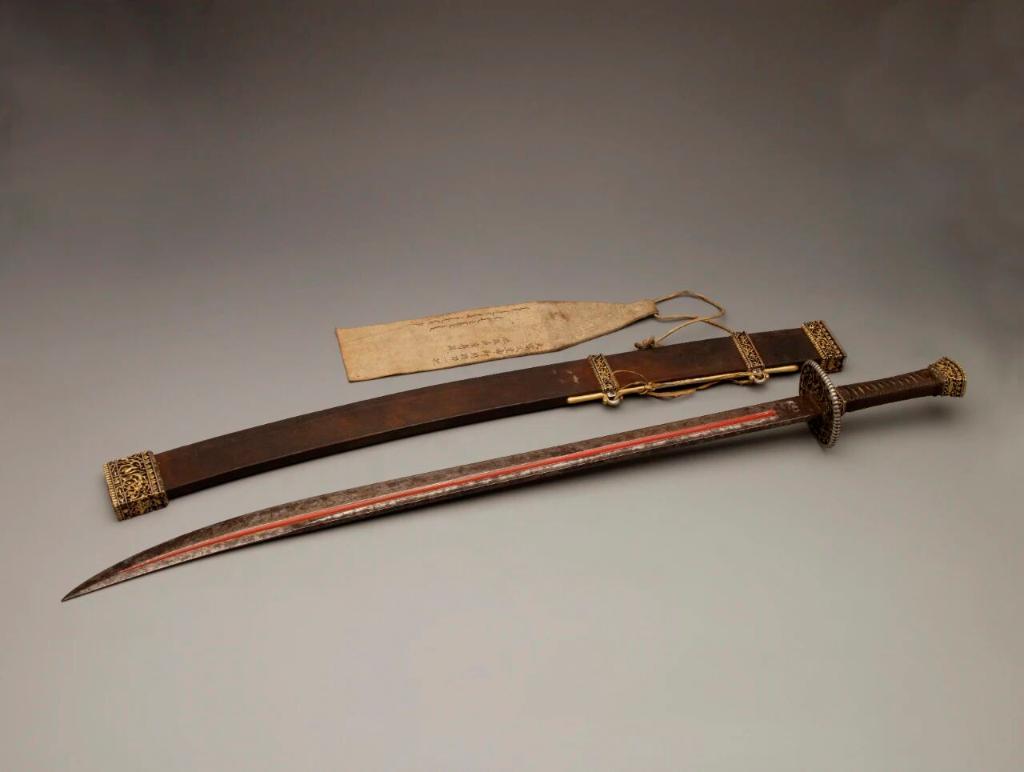 ??展出的“皇太極御用腰刀”。(沈陽故宮博物院供圖)